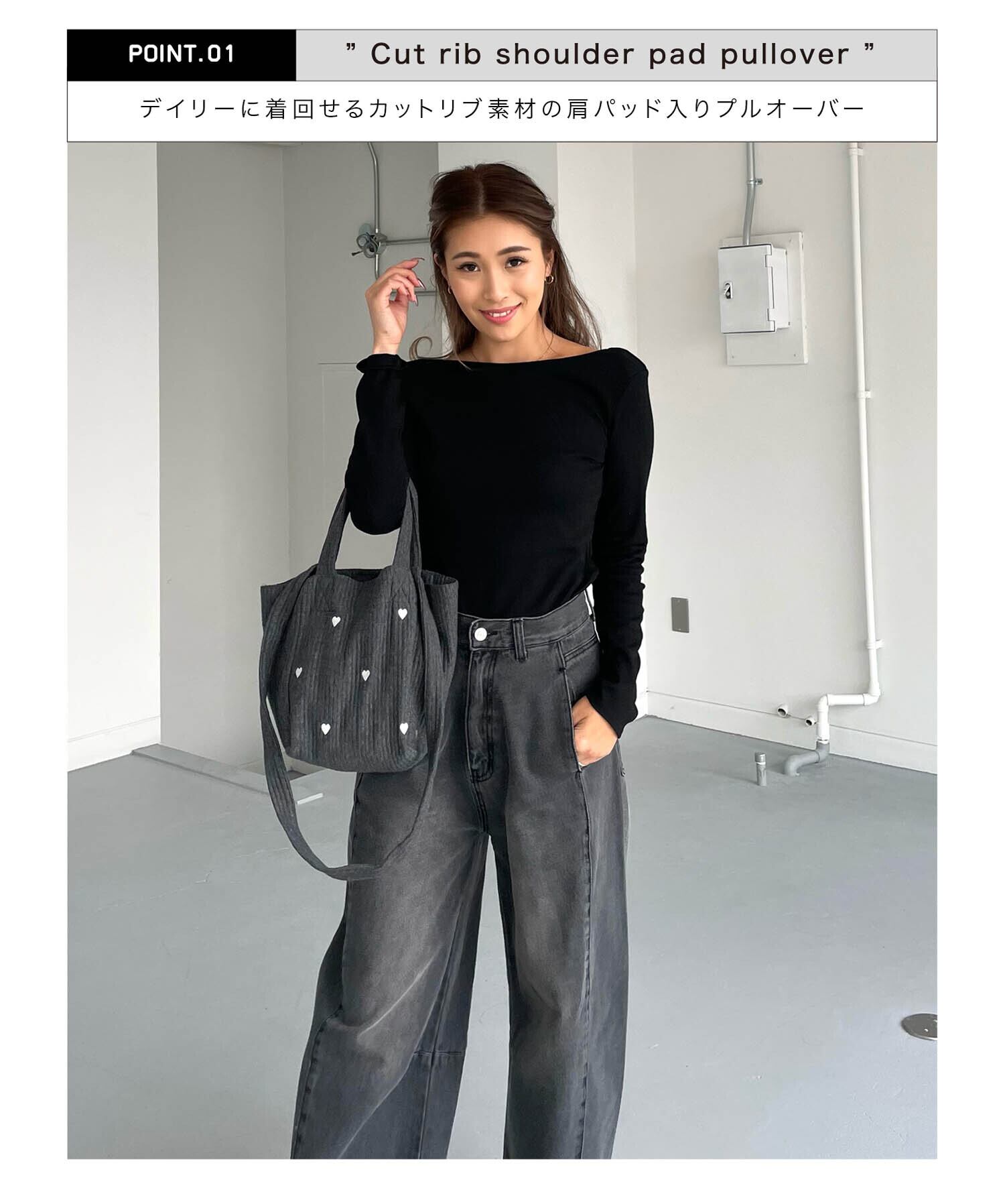 【SALE】A2132 カットリブショルダーパッドプルオーバー