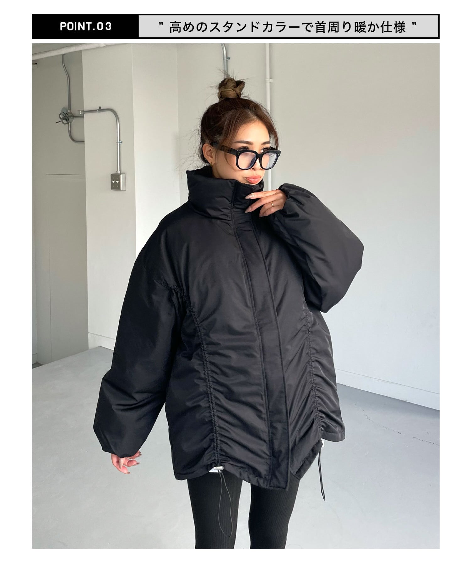 ・高めのスタンドカラーで首周り